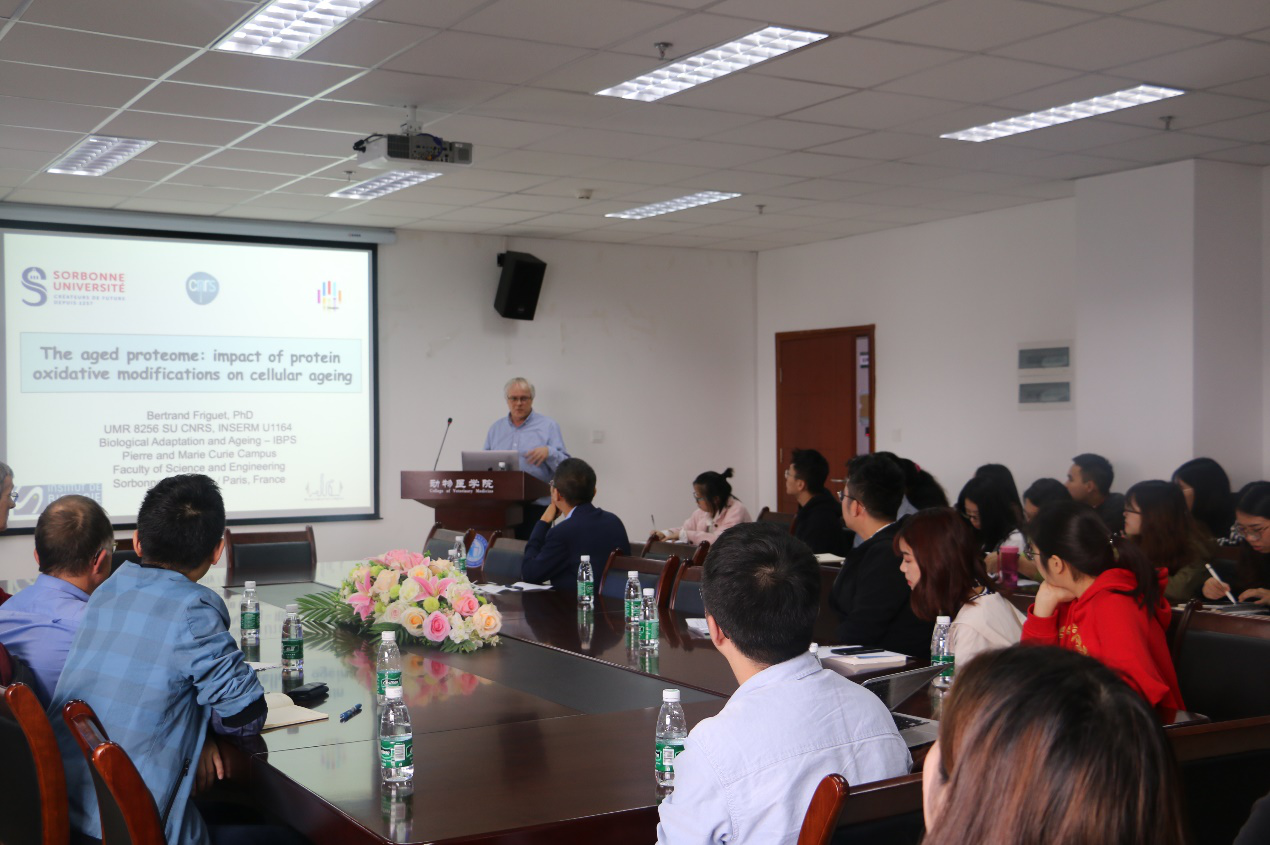 10月14日至18日,应bat365官方网站邀请,法国国家科学研究中心(CNRS)Philippe DELEPELAIRE教授、法国索邦大学(Sorbonne Université)Bertrand FRIGUET教授到成都校区作学术交流。