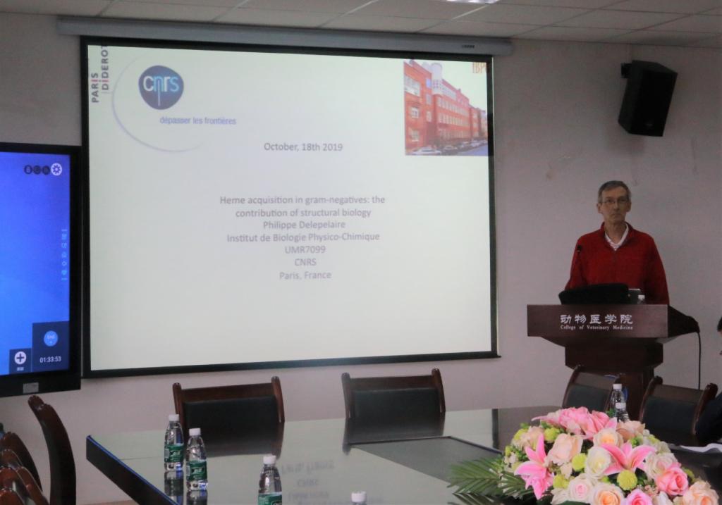 10月18日上午,Philippe DELEPELAIRE和Bertrand FRIGUET做客动医学院教育部创新团队教授学术论坛,分别作题为“Heme acquisition in gram-negative bacteria: the contribution of structural biology(革兰氏阴性细菌血红素获取的结构生物学基础)”和“The aged proteome: impact of protein oxidative modifications on cellular aging(衰老蛋白质组:蛋白质氧化修饰对细胞衰老的影响)”的学术报告。Philippe DELEPELAIRE主要围绕流感嗜血杆菌的血红素转运系统,就参与该菌血红素利用的关键蛋白质的结构和机制进行详细解析;Bertrand FRIGUET为师生们揭示了细胞在人类一生中适应应激的基础机制,并通过对被羰基化,糖基化和脂质过氧化产物等修饰的蛋白质数据库的研究,发现与年龄有关疾病的相关蛋白质,为在神经系统和心血管系统预防和修复蛋白质衰老从而促进健康老龄化奠定了研究基础。报告中师生们与专家们就相关研究热点进行学术交流和互动。