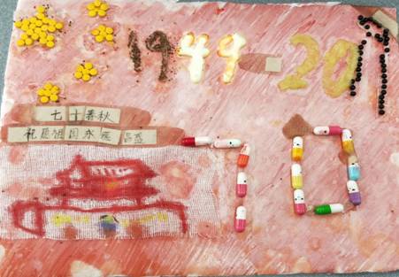 假如药品会表白,它们会说什么?9月下旬,来自bat365官方网站药学药剂本科生党支部、药学201702团支部、药物201702团支部等200余名学生党员、入党积极分子和团员青年,结合专业特色,通过收集到的50余种过期药品,创意化再利用,制成以“中国一点也不能少”“以国为家”“国旗下的成长”“中华民族同心逐梦”等创意画,献礼新中国70华诞。