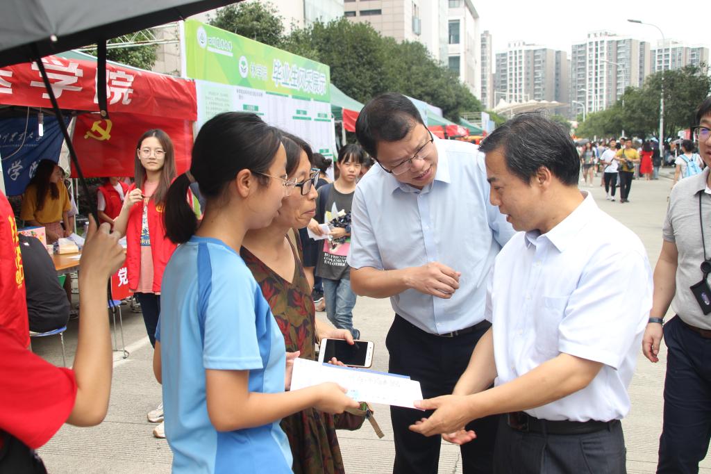 8月28日上午,院长程安春,院党委书记廖鹏,副院长曹三杰、贾仁勇及辅导员老师来到学院迎新现场,亲切看望新生和家长,并慰问迎新志愿者。