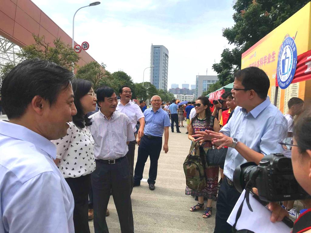 校领导们也关心着奋战在新生接待一线的工作人员和志愿者们,希望他们再接再厉,为家长和新生们留下一个好印象。