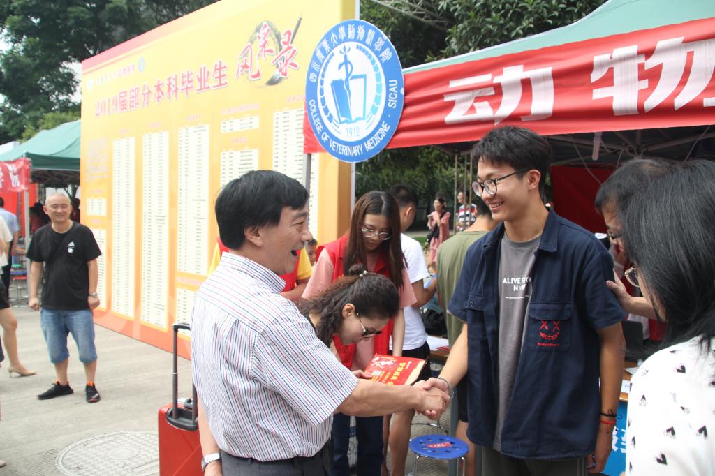“你是哪里人呀?”“读的什么专业?”校领导们热情又关心地询问新生及家长对学校的感受,勉励新生来到大学后要尽快转变角色,适应大学的学习生活,愉快地度过四年大学时光;并感谢家长们让子女选择川农大。领导们的到来获得学生和家长们的阵阵掌声,不少学生和家长用手机记录下这一珍贵的影像。