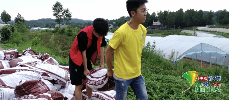 团队成员参与肥料运输工作。 中国青年网通讯员 唐天钢 摄
