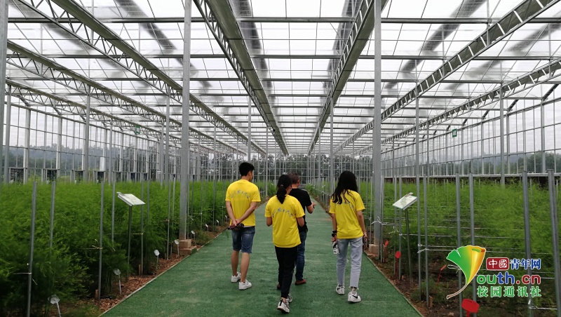 农头企业技术人员带领小队成员参观温室。中国青年网通讯员 唐天钢 摄