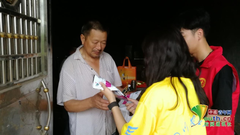 小队成员随公司一同前往村民所居住处,进行走访、发放兽药与宣传册。中国青年网通讯员 唐天钢 摄