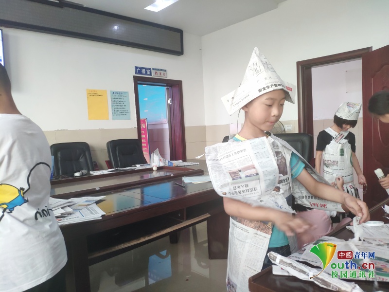 小朋友们正在制作报纸服装 中国青年网通讯员 李景华 供图