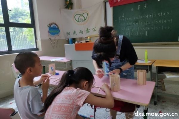 爱心收纳盒之后,志愿者手把手教孩子们制作信封,孩子们认真地看着老师,在老师指导下完成第一个之后,自己动手做起了第二个。许多孩子仍然不会,志愿者就再次耐心地教一遍、两遍……“其实重要的不是会不会,而是动起来。一旦动手做起来,孩子们就会发挥他们的无穷想象力,赋予手工不同的意义。”志愿者谈道。