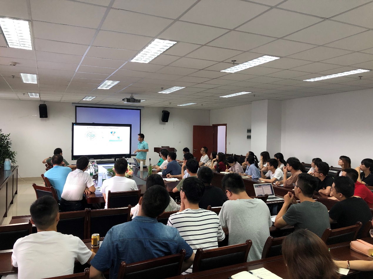 师生结合实验室研究方向与主讲人展开探讨交流,郎一飞结合个人研究和自身见闻,从实验方法、实验设计等方面作了分享。