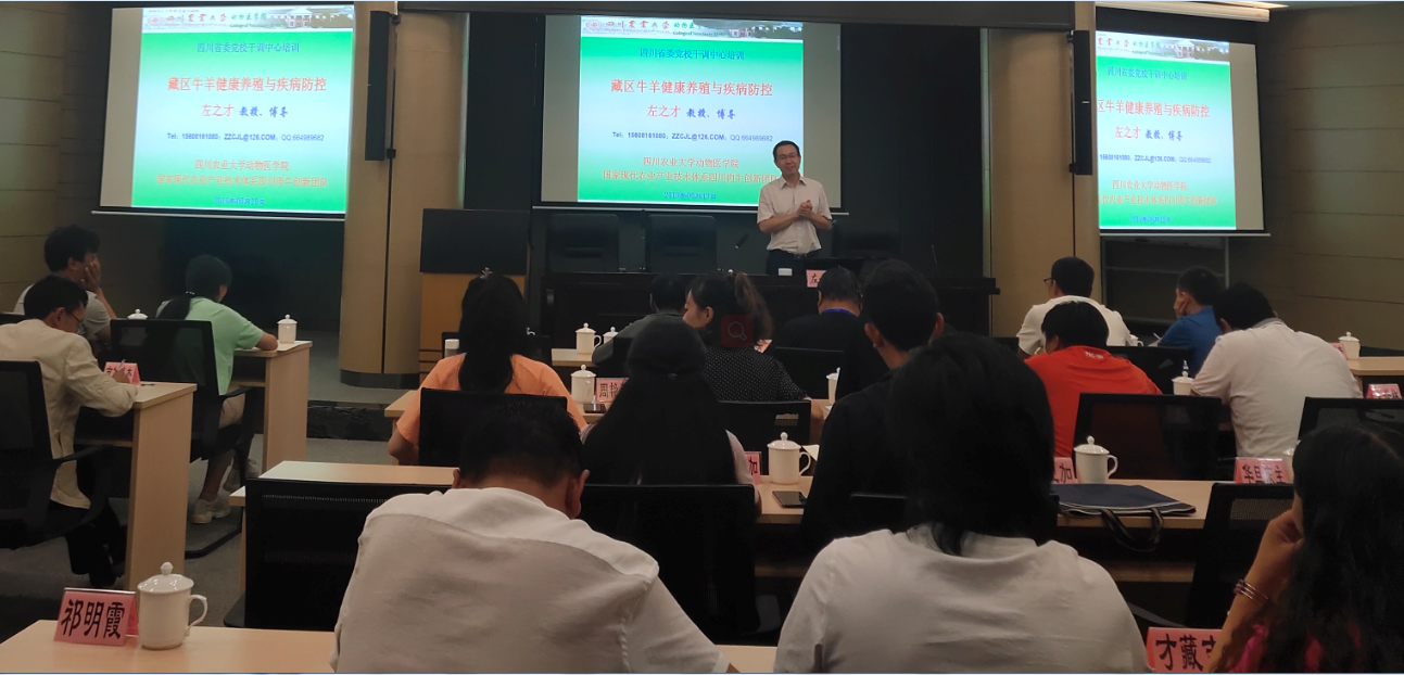 6月19日,四川肉牛创新团队疾病防控岗位专家,bat365官网bat365官方网站左之才教授应四川省委党校干训中心邀请,为国家能源集团2019年帮扶的藏区贫困县(青海曲麻莱县、刚察县,西藏的聂荣县)基层干部做题为“藏区牛羊健康养殖与疾病防控”的扶贫培训。国家能源集团帮扶的扶贫班学员包括机关下派的帮扶干部、乡镇干部、第一书记及部分村主任。