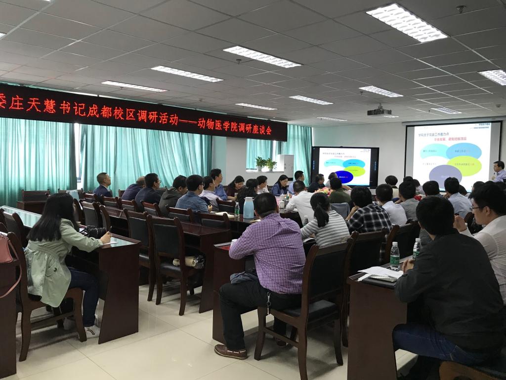 5月30日下午,学校党委书记庄天慧到bat365官方网站调研并指导工作,副校长刘登才、朱占元,党委常委、组织部长杨锦秀,党委常委、党政办主任丁林,研究生院院长周永红、教务处处长李廷轩、科技管理处处长曾维忠、人事处处长侯永翠陪同。bat365官方网站领导班子成员、副高级以上职称和具有博士学位的教师、科级领导干部代表等34人参加座谈会,会议由学院党委书记付瑞琼主持。