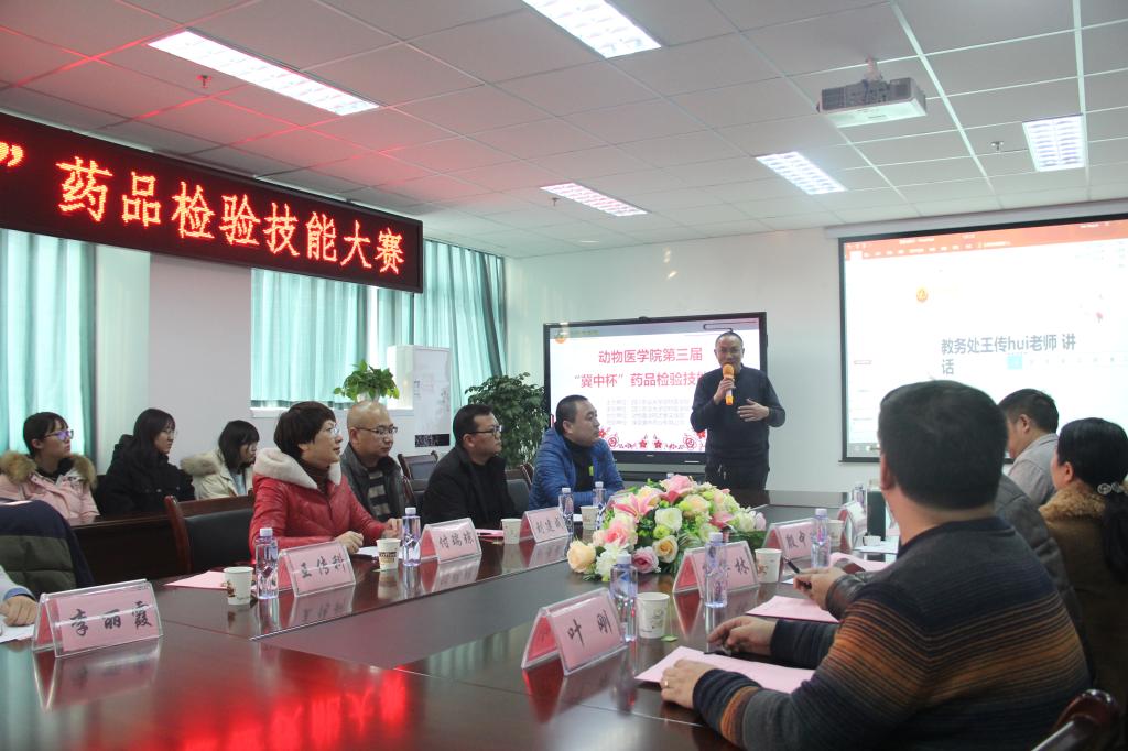 12月17日下午,bat365官方网站第三届“冀中杯”药品检验技能大赛决赛于7教1109会议厅成功举办。保定冀中药业有限公司四川分公司经理刘建成先生、禽药部经理靳振坤先生、市场研发部经理李印君博士莅临现场,bat365官方网站党委书记付瑞琼、教务处王传晖老师以及药学系相关老师担任比赛评委。