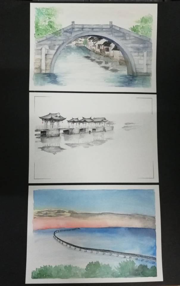 最终,在绘画组中,动医1803秦千禧同学的作品《月映玉桥》以“鸡声茅店月,人迹板桥霜”的诗情画意,喜摘桂冠;药物1802童雨嘉同学的作品《历史的传承》以巧妙的拼接手法,将桥与历史相结合;动医1704许佳雪同学的《夜桥》以夜晚桥的神秘与寂静,两人荣获二等奖。而在书法组中,动医1602赵军杰同学以一副妙笔丹青《港珠澳大桥颂》荣获一等奖;药物1801范家豪同学的《墨染溪桥》与动医1602姜波宇同学的《金陵文德桥思远人》平分秋色,同获二等奖。