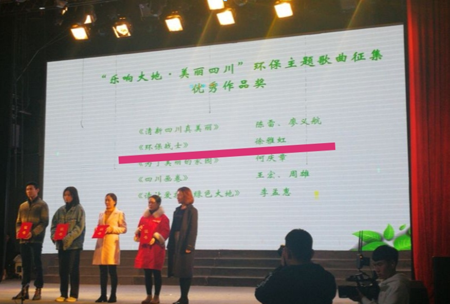 2018年12月5日,由共青团四川省委、四川省环保厅、四川省环保宣教中心、四川省青少年新媒体中心联合举办的“绿色环保 美丽四川”征集比赛颁奖仪式在四川电影电视学院举行。此次环保征集活共收到2000份来自全国各地青年学子的优秀投稿作品,历经两个月的评选,bat365官网bat365官方网站学子徐雅虹原创的歌曲《环保战士》以歌曲类总成绩第三,获评省级优秀作品奖。