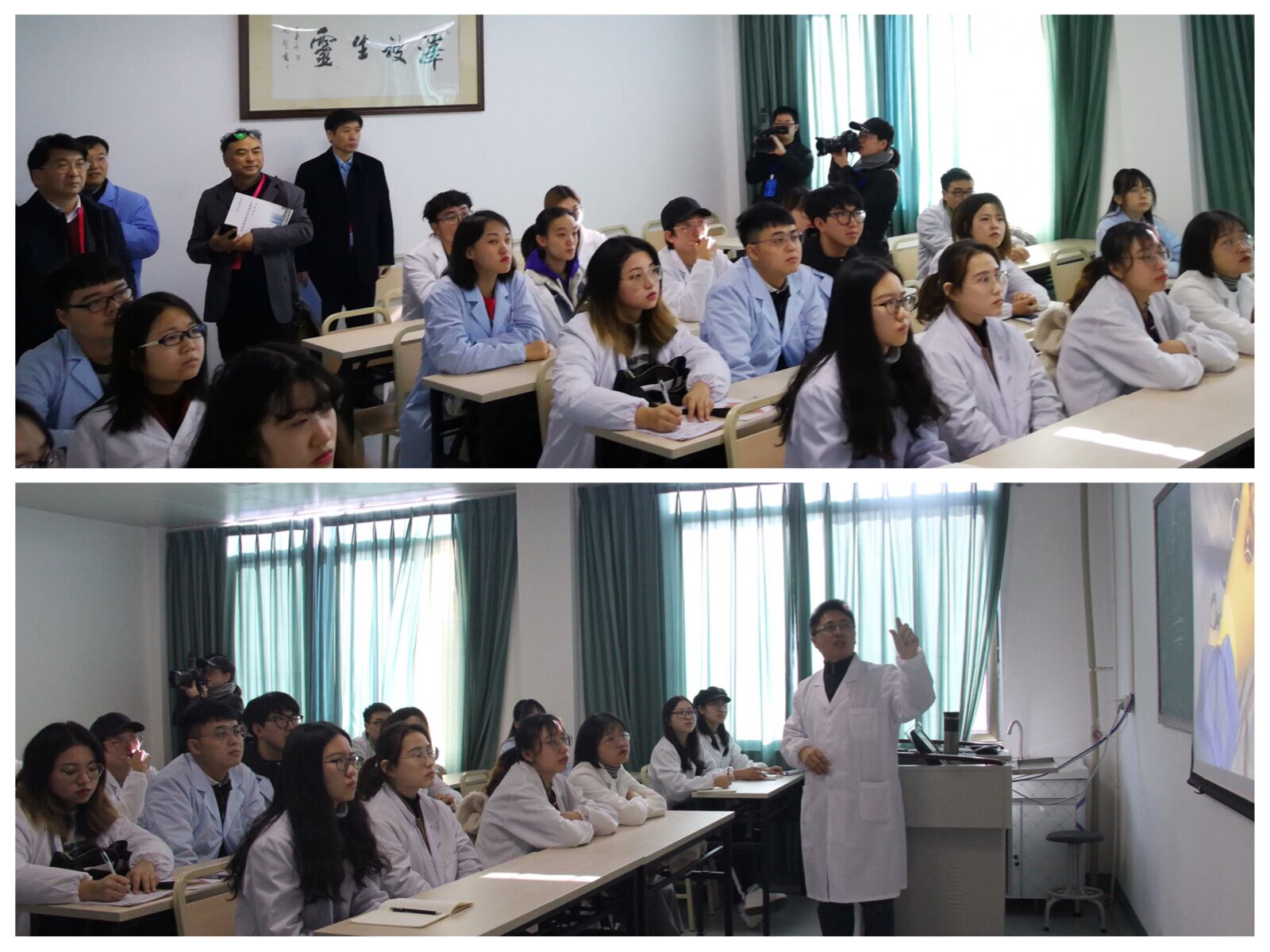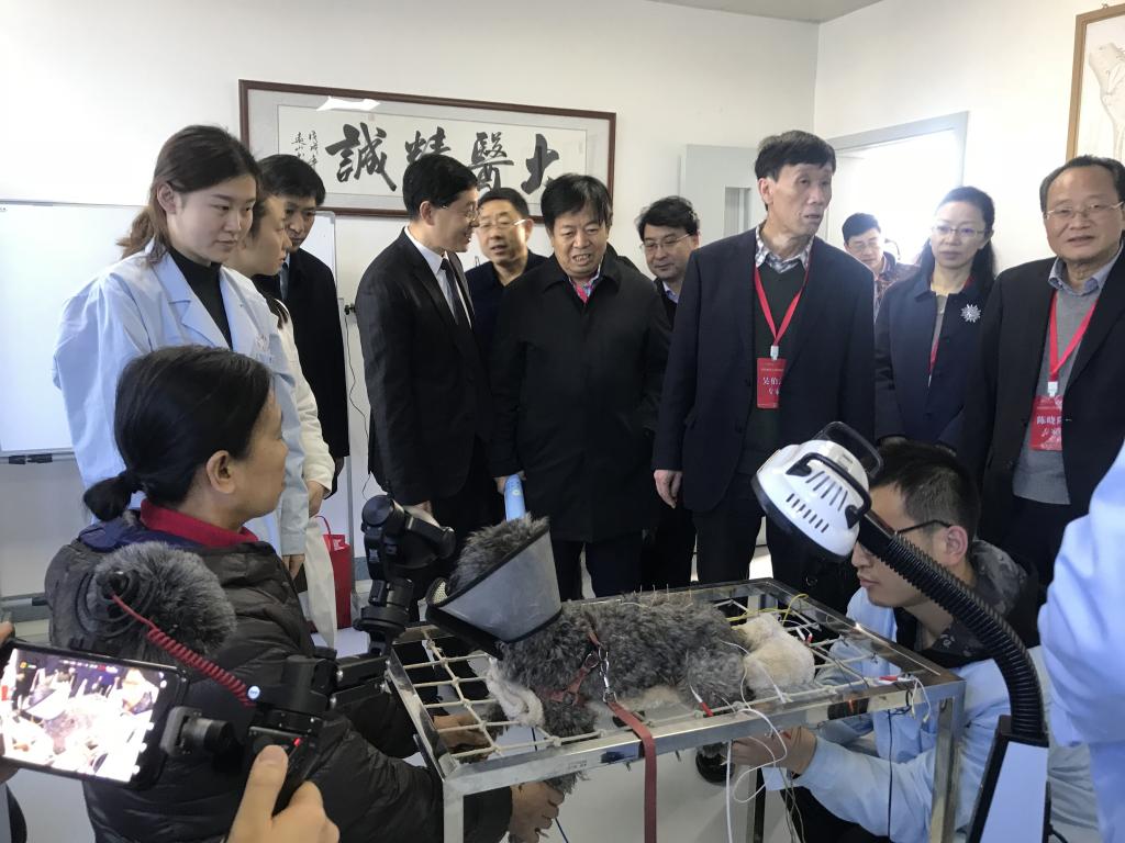 在二楼手术视频直播室,30余名学生正通过手术视频传导技术,在马晓平老师讲解下观摩进行中的手术操作的每一个细节,“这样的授课方式让更多同学获益。”在中兽医针灸室,专家饶有兴趣的驻足观看了一只患有腰椎病的狗如何接受贺常亮老师的针灸治疗。