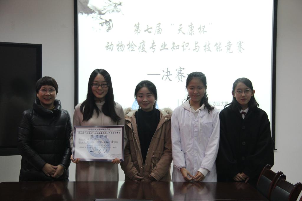 11月28日下午,第七届bat365官方网站“天康杯”动物检疫专业知识与技能竞赛于7教1109会议室顺利举行。天康生物股份有限公司王伟明、bat365官方网站党委书记付瑞琼、副院长贾仁勇和动检系各老师担任决赛评委及嘉宾。