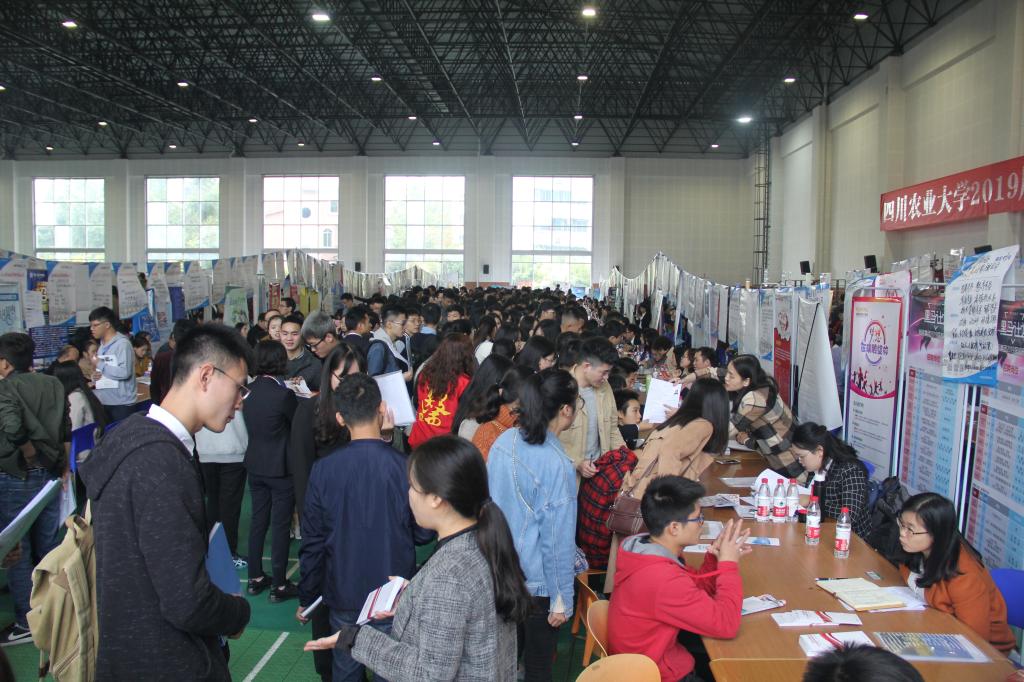 10月25日上午,bat365官网2019届毕业生双选会于成都校区风雨操场会堂顺利举行。全国各地的许多知名企业赶赴现场,与川农毕业生相约盛宴。其中,共有超过100家企业进驻bat365官方网站展区,相较于春季双选会多出40余家,另开设8场单独招聘专场。