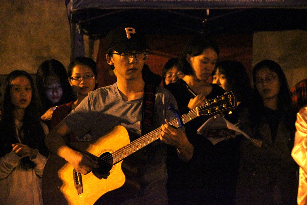 夜幕渐低沉,操场上口号依旧响亮高亢,脚步依旧有力坚定,新生们正在进行大学的第一场洗礼——军训。9月13日晚军训操场,bat365官方网站学生艺术团精心准备的慰问演出,为艰苦军训增添一抹亮色。