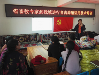 扶贫工作以集中培训和现场解困相结合的形势开展。马晓平先后在甲宗镇和各卡镇冻坡甲村为当地牦牛及肉牛养殖户、乡村兽医、养牛重点村防疫员、疫控中心技术人员进行了2次题为“牦牛常见疾病适用技术”的专题培训,受训人员超过100人。