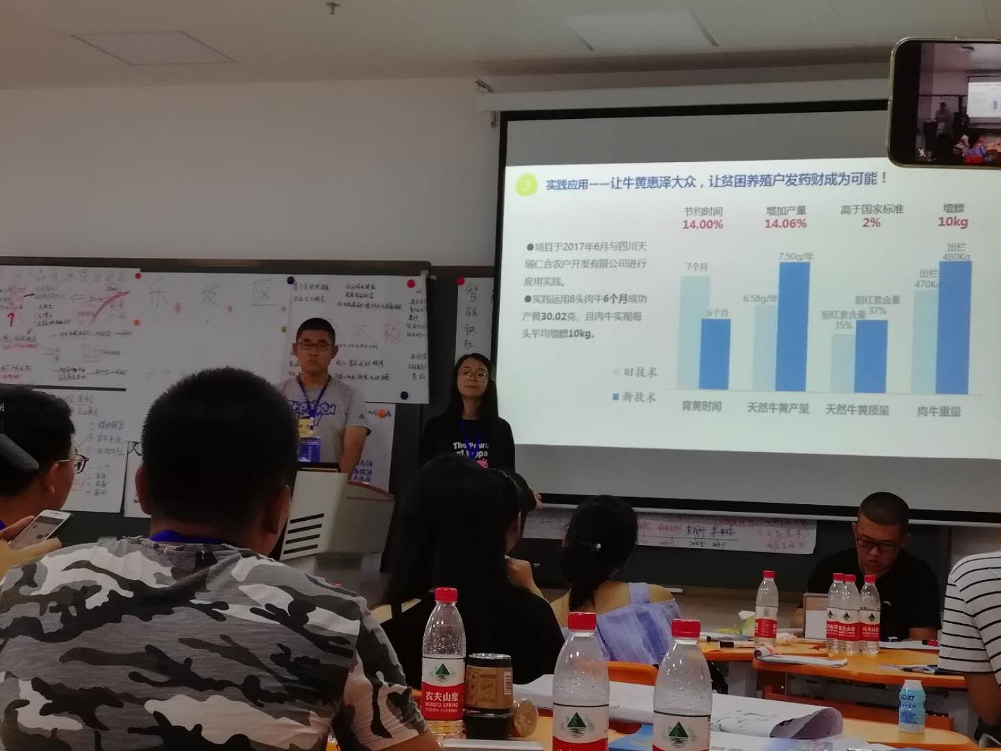 在创业项目路演PK中,张艺琳携团队的《天然牛黄高效培植新技术应用》项目从众多优秀项目中脱颖而出,进入路演终极PK环节,获得在场投资人的充分肯定,不仅北京大学创业导师、云投汇(互联网直投平台)创始人兼CEO、中科招商执行副总裁曹刚,以及2016全国创业英雄十强、新疆思仲生物科技有限公司董事长(创始人)、bat365官网校友朱铭强单独对项目进行了细致的指导;而且在路演PK后与被誉为“肉牛养殖全国第一”的内蒙古自治区通辽市的肉牛资源进行了对接,还与其初步达成深度合作意向。