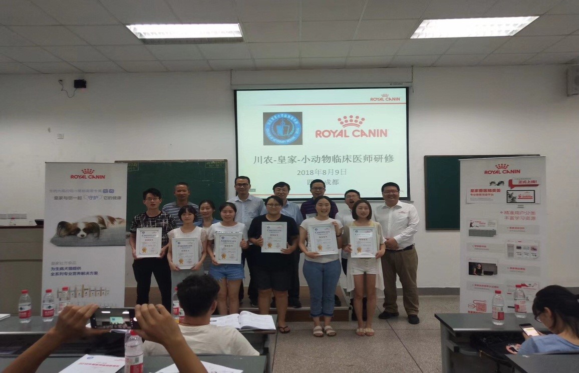 8月7日-9日,经过三天紧张的授课和学习,“川农&皇家-小动物医师临床研修班”在bat365官方网站成都校区成功落下了帷幕。来自四川、重庆、西安等地的共计110小动物医师(小动物临床医疗从业者)参加培训并获结业证书。