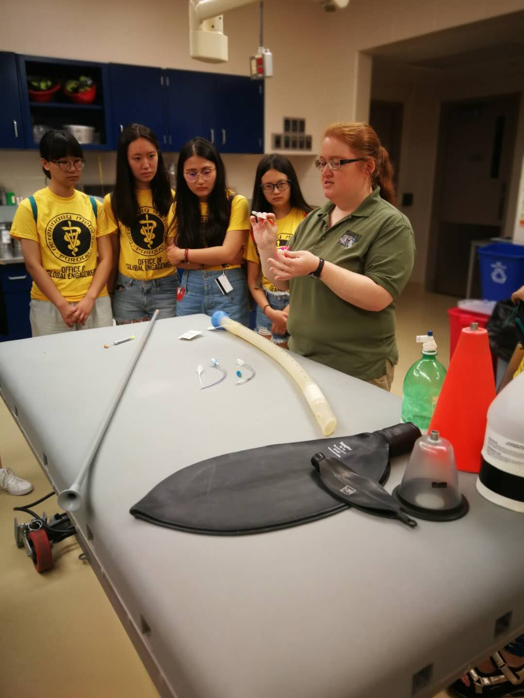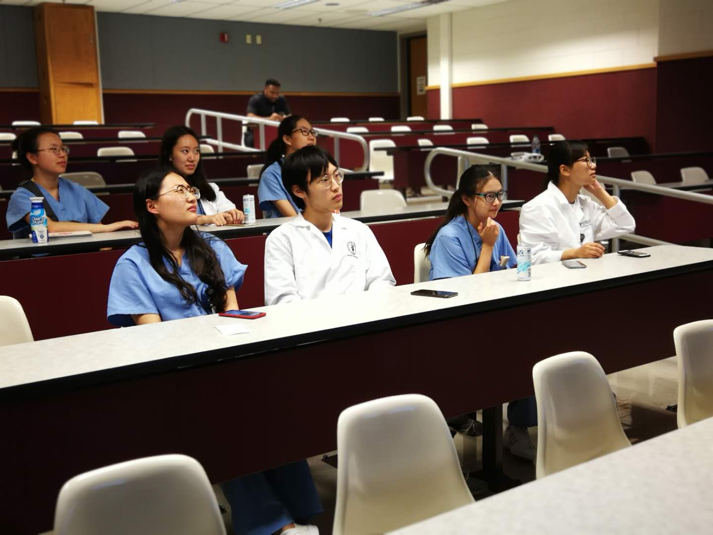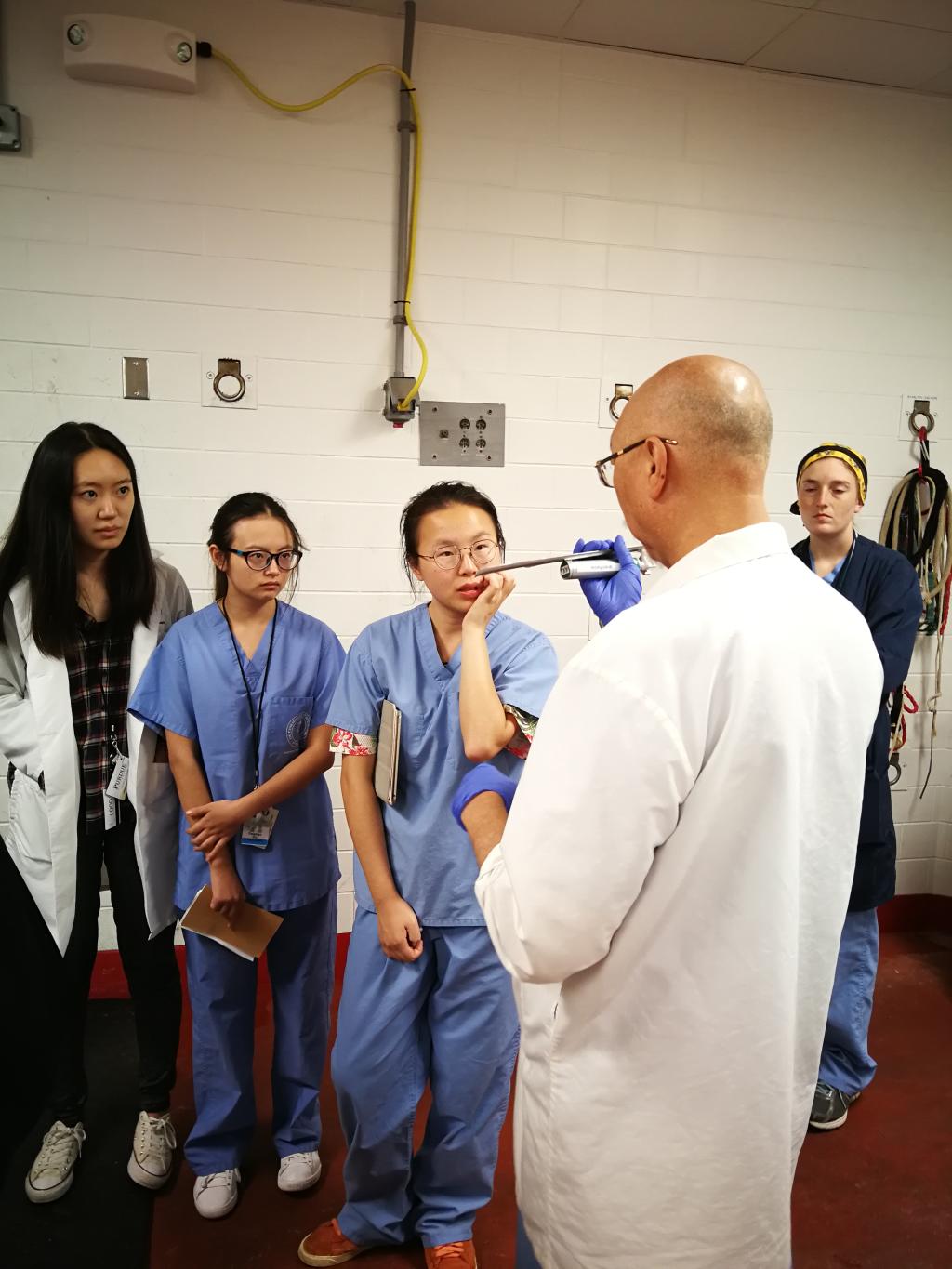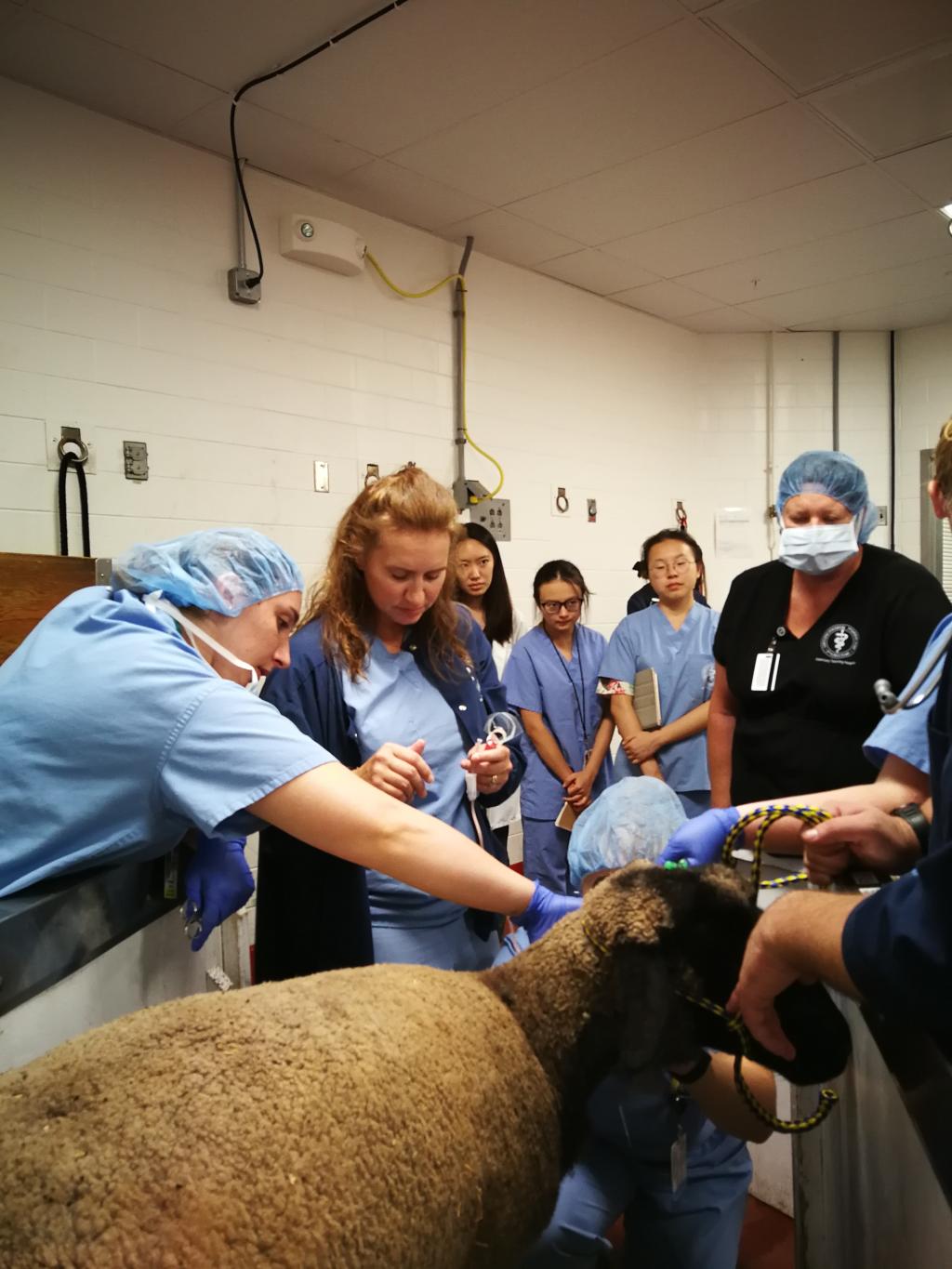 7月22日,抵达美国的第2天,实习就按原计划有条不紊的开展起来,内容丰富、节奏十分紧凑。和往届相似的地方是,7名实习生的“固定”课程为每天分成若干小组,分别在小动物内外科、大动物门诊、麻醉科、眼科、牙科、影像科、肿瘤科、行为学等不同科室进行轮岗实习,同时参加了一些小动物临床病例的管理、大型动物的医护讲座等。