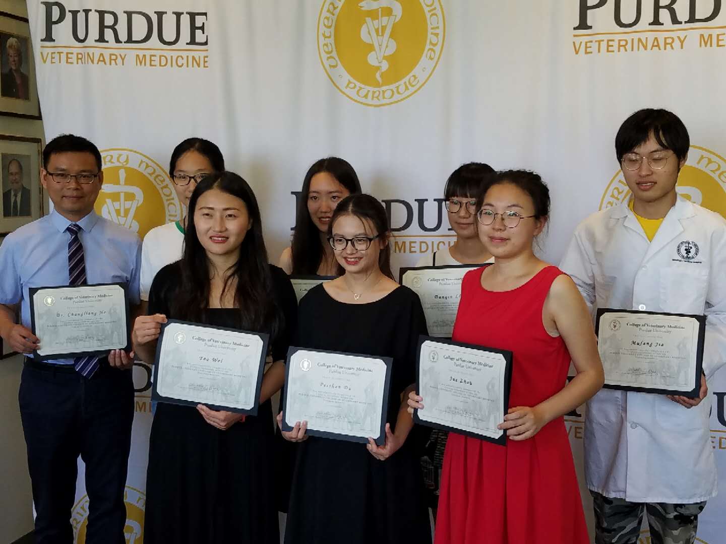 结业典礼上,普渡大学兽医学院院长Dr. Reed教授高度评价了此次实习的成果,对师生们顺利完成实习任务表示祝贺,亲自为每一位实习生颁发结业证书,并和同学们合影留念。