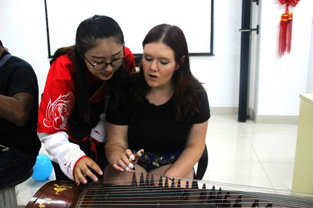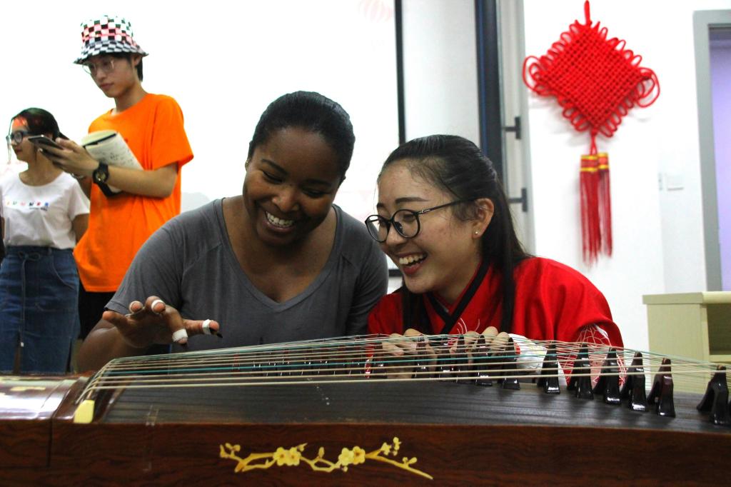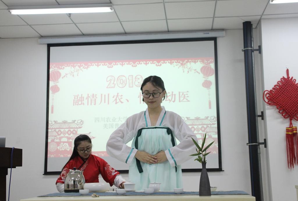 琴声悠悠,娓娓道来,胡馨月和潘舒蕾同学的古筝二胡合奏的《大鱼》似环佩铃响,余音绕梁;拳拳无极,柔中带刚,中方同学的太极拳轻灵圆活、开合有序;一壶春露,茶烟袅袅,茶艺表演,以茶会友,交换生同学细细品茶,清茗一杯情真……