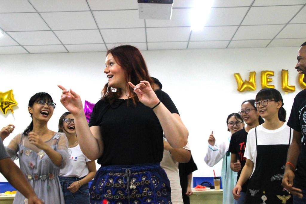 普渡大学的同学也为动医学院的师生准备了节目——舞蹈表演,并现场讲解动作,和动医同学共同表演。丰富的互动节目,促进了两校同学的友谊。