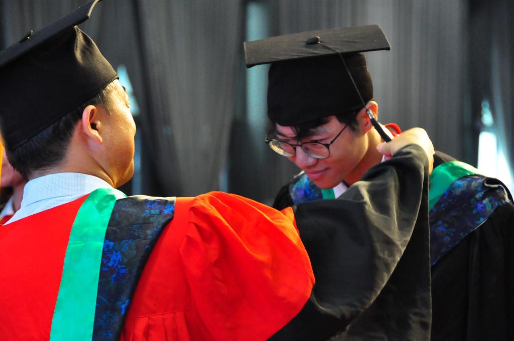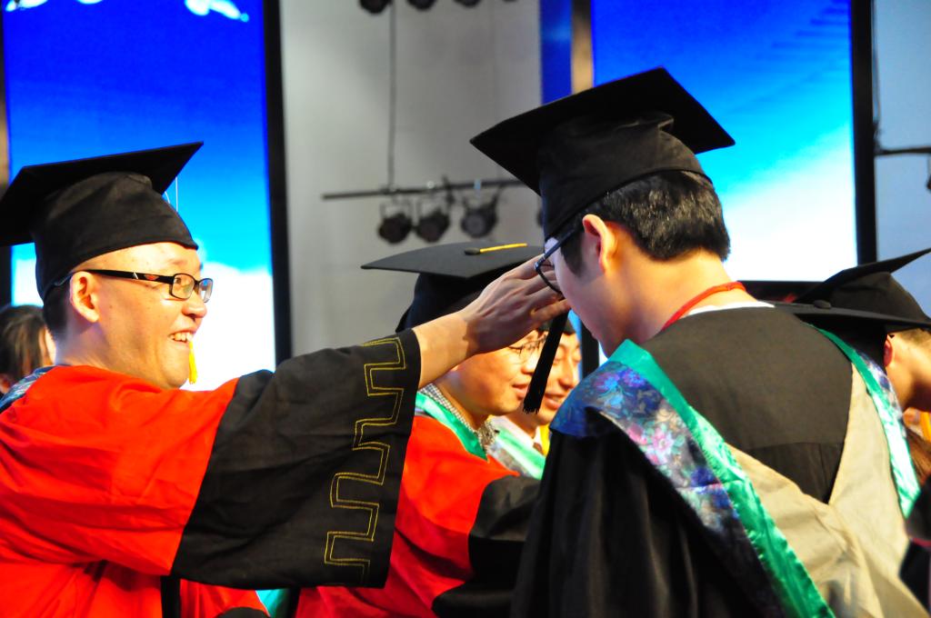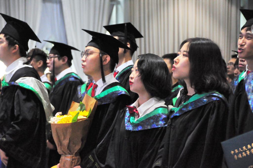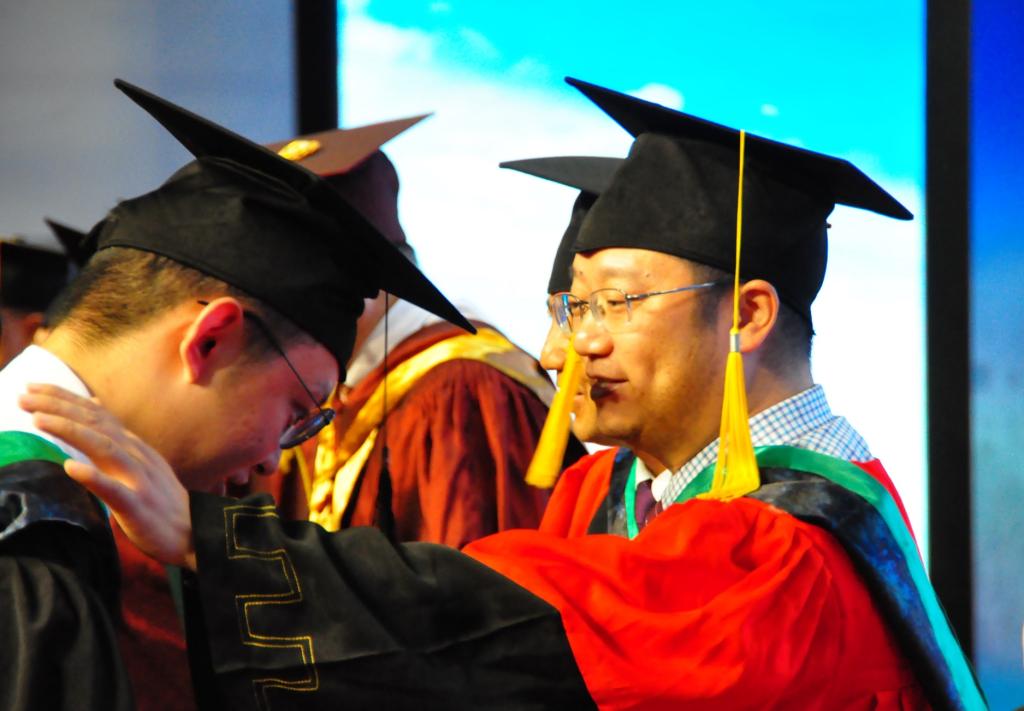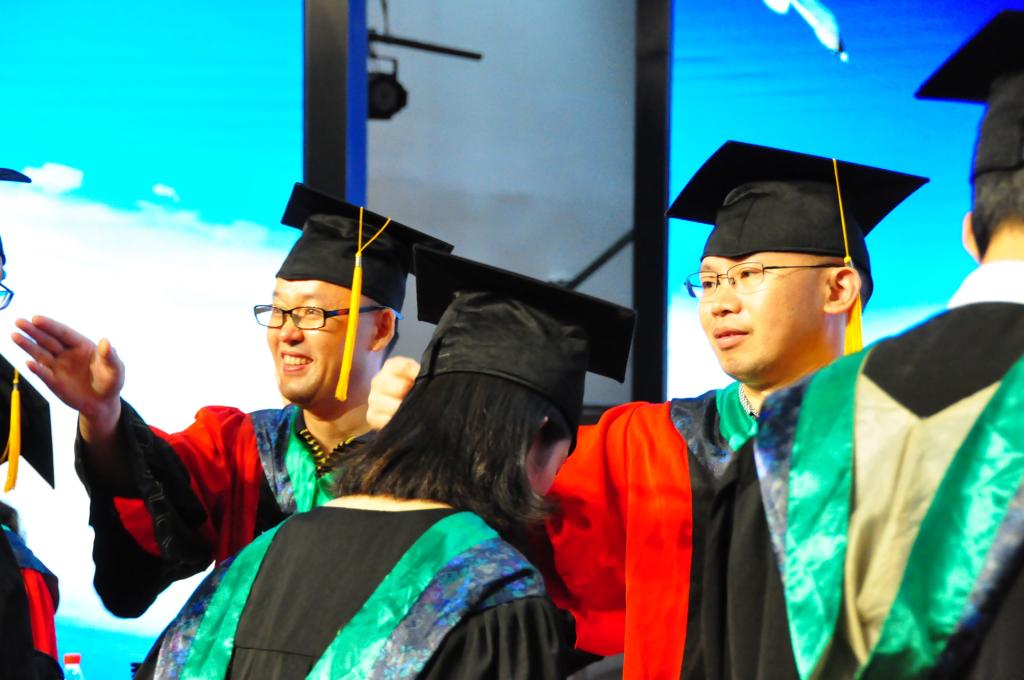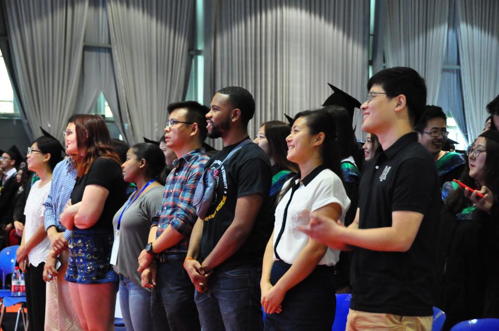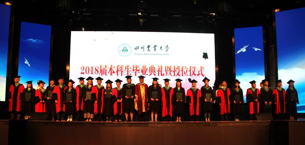 最后,典礼在全体师生一起在激昂的《歌唱祖国》和由付瑞琼领唱的《二十年后再相会》温馨氛围的合声中,圆满结束。美国普渡大学交换生项目的师生一行(4人)也受邀参加了动医学院的毕业典礼。动物医学2018届的台湾学生苏新焱,和专程从台湾赶来的父母一起分享了自己毕业的快乐与幸福。