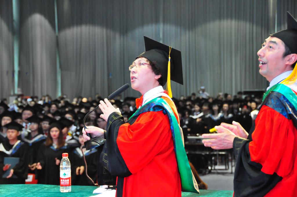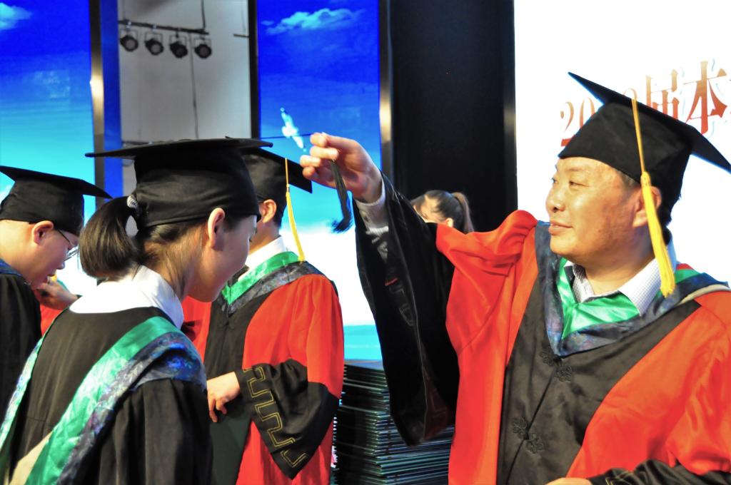 “经过四年的学习、奋斗、锤炼,你们不仅收获了知识与技术,收获了安生立命之本,收获了大展宏图的起点,更收获了师生、同学的友谊,有的同学还收获了相伴一生的爱情。这,都将成为你继续前进的支撑,成为你人生宝贵的财富。终点,更是起点。”教师代表、动医(应用型)201403班主任陈舜寄语即将毕业的学生“做事为人不忘初心、充满信心、具备耐心、事事热心、积极用心;自律乐观,就算失败,也要立刻站起来,再次积极争取机会;志存高远且存脚踏实地。”