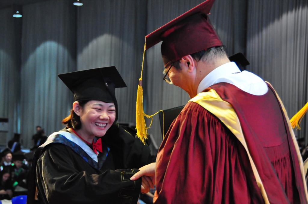 伴随“相聚在桂花飘香的时节”的音乐声,毕业生排队上台接受证书,喜悦与感激的泪光挂在广大学子的脸上。典礼分别为5名省级优秀大学毕业生、23名校级优秀大学毕业生颁发荣誉证书,为6名优秀论文作者颁发获奖证书,为全体毕业生颁发学位证书。不少毕业生的亲友从各地赶来参加典礼,亲友中有人用手机对典礼全程录像,有人认真记录台上师长的教诲与嘱咐,还有人手捧鲜花排成长队等待送上祝福。