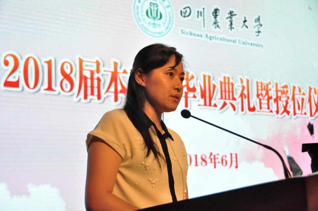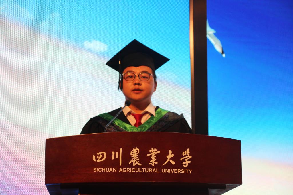 “川农让我体会最深的是包容;川农让我成长最多的就是懂得了担当;川农让我感受最切的就是力行的意义。”毕业生代表、动医(复合型)201403班的杨洪带着感恩的心分享了动医学子共同的大学成长感悟。