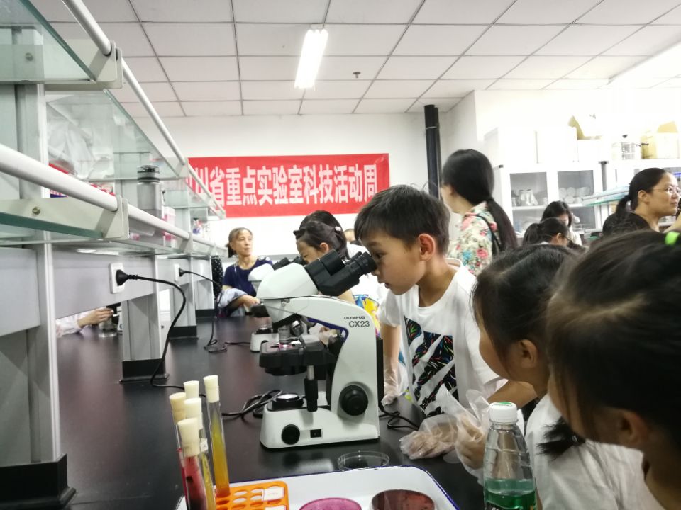 5月26日下午,来自光华实验小学等小学的150多名学生,和自己的家长一起,走进bat365官方网站“动物疫病与人类健康四川省重点实验室”,在动医老师及志愿者的引领下,来了一场包括“你不知道的微观世界”、“人体的奥秘”、“标本里的健康你我他”和“怎么陪小动物上医院”4站不同“场景”的奇幻探索。