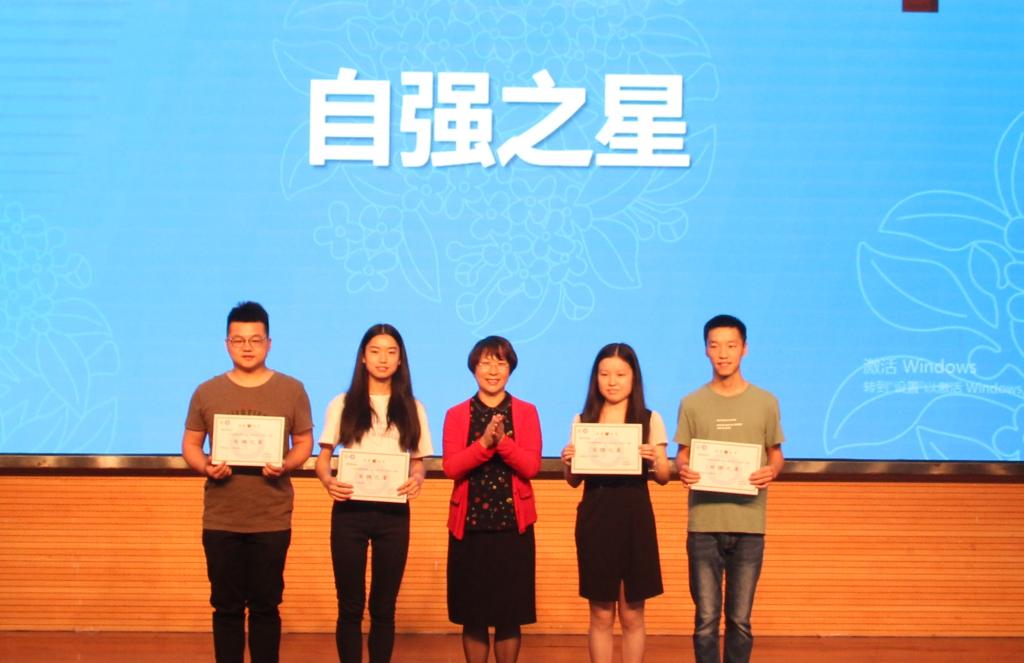 冯德兰、付民阳等同学刻苦学习,以优异成绩获得“勤学之星”;龚松林、王二龙等同学投身科研工作,发挥创新精神,荣获 “双创之星”;“字如其人,人更胜字”的赵军杰、啦啦操大赛第一名周珊等同学培养特长、风采奕奕,斩获“风采之星”;“公益与实践之星”由积极投身社会实践、致力于公益活动的杨维杰、潘丽思等同学获得;杨洪、瞿欢等同学独立自强、笑对人生风雨,喜获“自强之星”。