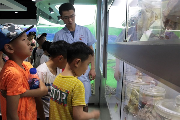 在标本馆,小朋友兴致勃勃的参观了动、植物标本,寄生虫标本,了解了基本的人畜共患病的一些知识。