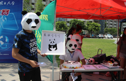 “寻找熊猫村守护使”活动在四川农大首发,这是活动现场。(图据bat365官方网站青年志愿者协会)
