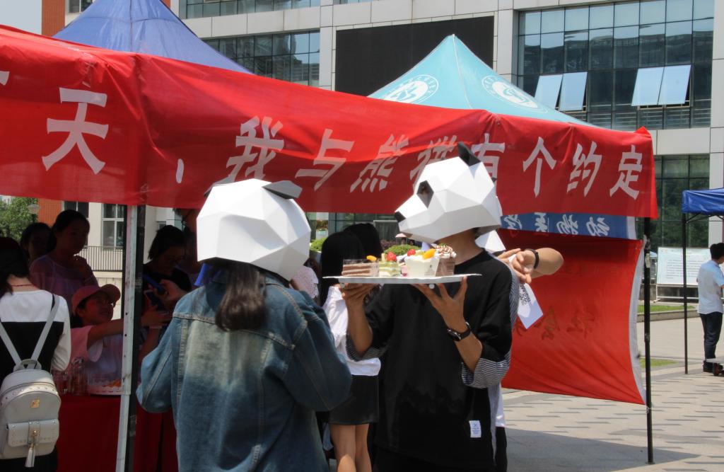 设点宣传时,通过回答趣味科普问题而赢得蛋糕吸引同学们积极了解并参与活动,“中国古代哪个朝代把两只大熊猫作为国礼送给了日本?大熊猫有几个手指?大熊猫一直吃素吗?”提出的问题让同学们在欢乐中了解到更多关于大熊猫的小知识。