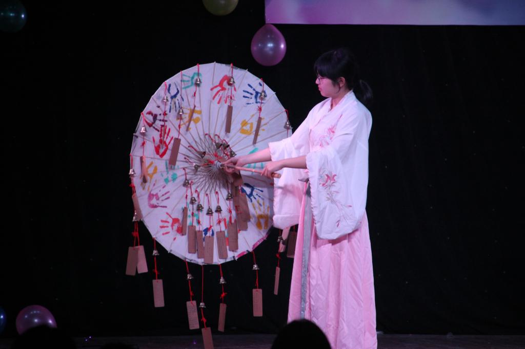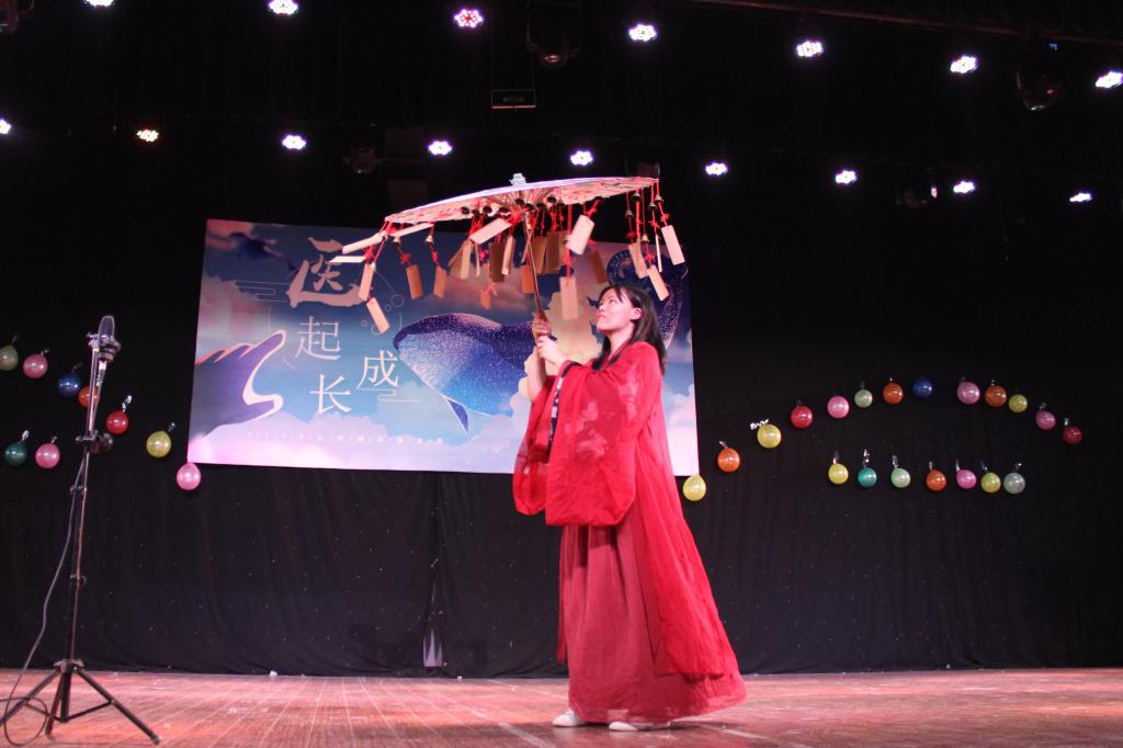 动医1702的班级以弹唱、舞蹈等方式结合PPT向观众展示班排。“小时候每个人都有一个歌手、舞蹈梦,随着长大我们的梦想一直在变,但是我们的心永远不变,为梦想前行。”