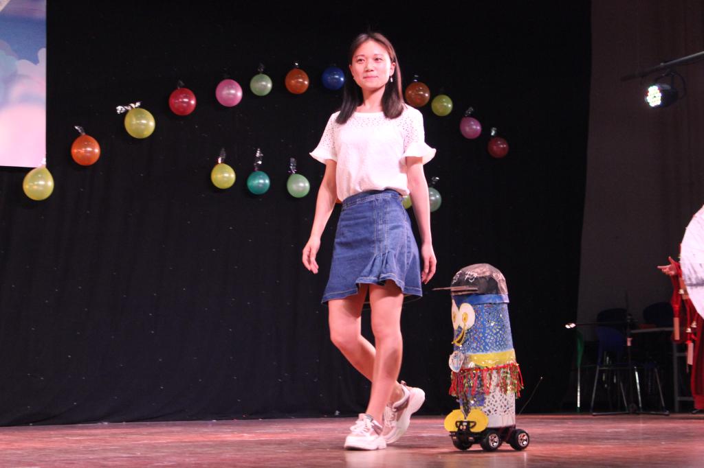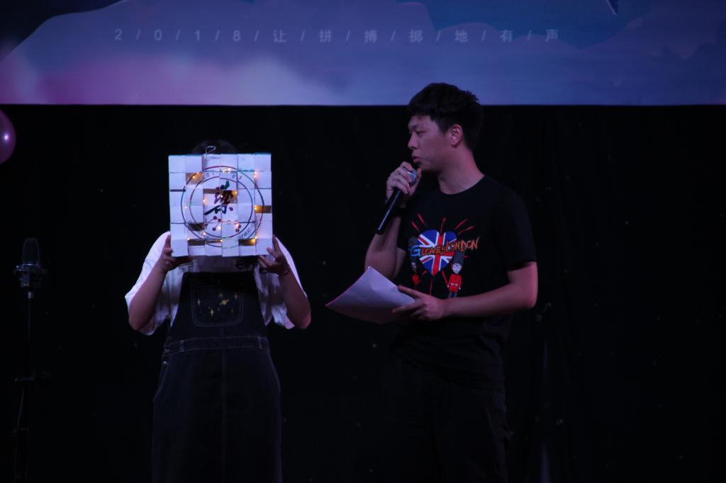 此次比赛17级13个小班全体参加。各小班不仅用幻灯片、视频等,向现场观众展示产品策划、设计理念、形象塑造;还通过模拟场景、歌舞书画等,多维度展示各自班牌的独特元素、立体层次、灯光夜视效果、远程遥控等。有油纸伞、胶囊、机器人,还有积木、化妆盒等。