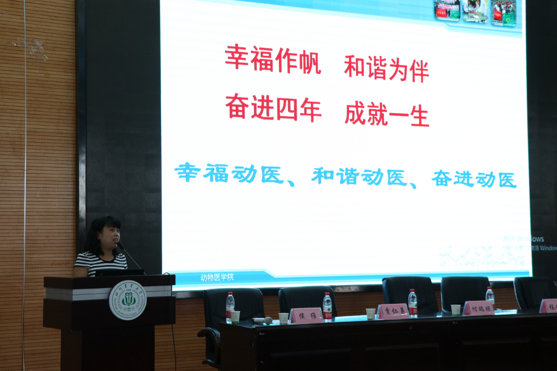 教师代表舒刚发言中希望同学们应在大学生活中更加注重自身的发展,对未来的规划,切忌沉迷网络。学生代表杨洪发言中以自己的成长经历和学院的榜样力量,鼓励同学们能在大学生活中找准自己的目标,坚持不懈,每天进步一点点,走出属于自己的精彩之路。新生代表彭雪霁代表2017级的新新动医人表达了他们对大学生活的憧憬以及承诺、对学院老师以及师兄师姐们的感谢。