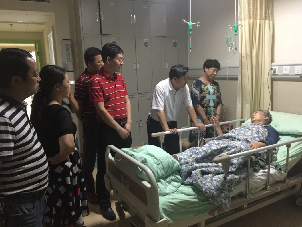 9月6日晚,学院院长程安春、党委书记付瑞琼、工会主席曹三杰带领教代会主席、工会副主席、工会委员及药学系部分教师,专程赶往四川省肿瘤医院,探望患病住院的退休教师柳仲华。
