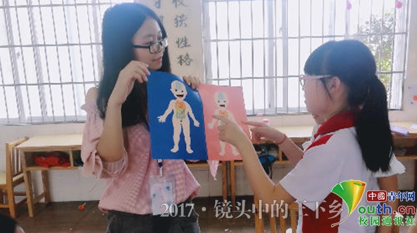 孩子们指出男女身体结构的差异。中国青年网通讯员 张蝶 摄