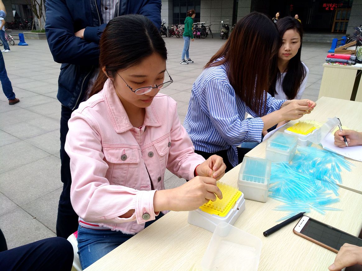 此次运动会设置了两个团体项目和5个个人项目,所有项目兼具挑战性和趣味性。上午10时,个人项目活动正式展开,定点排球、小桌乒乓球、装枪头、踢毽子和跳绳报名区纷纷排起了长队。亦或许是平时实验太忙,难得放松,比赛当中选手们热情洋溢,活力四射,不断超越展现自己。单项比赛中,速度装枪头比赛可谓是最具特色的一个,大家都将自己平常做实验的本领拿了出来,个个眼疾手快,不分伯仲。