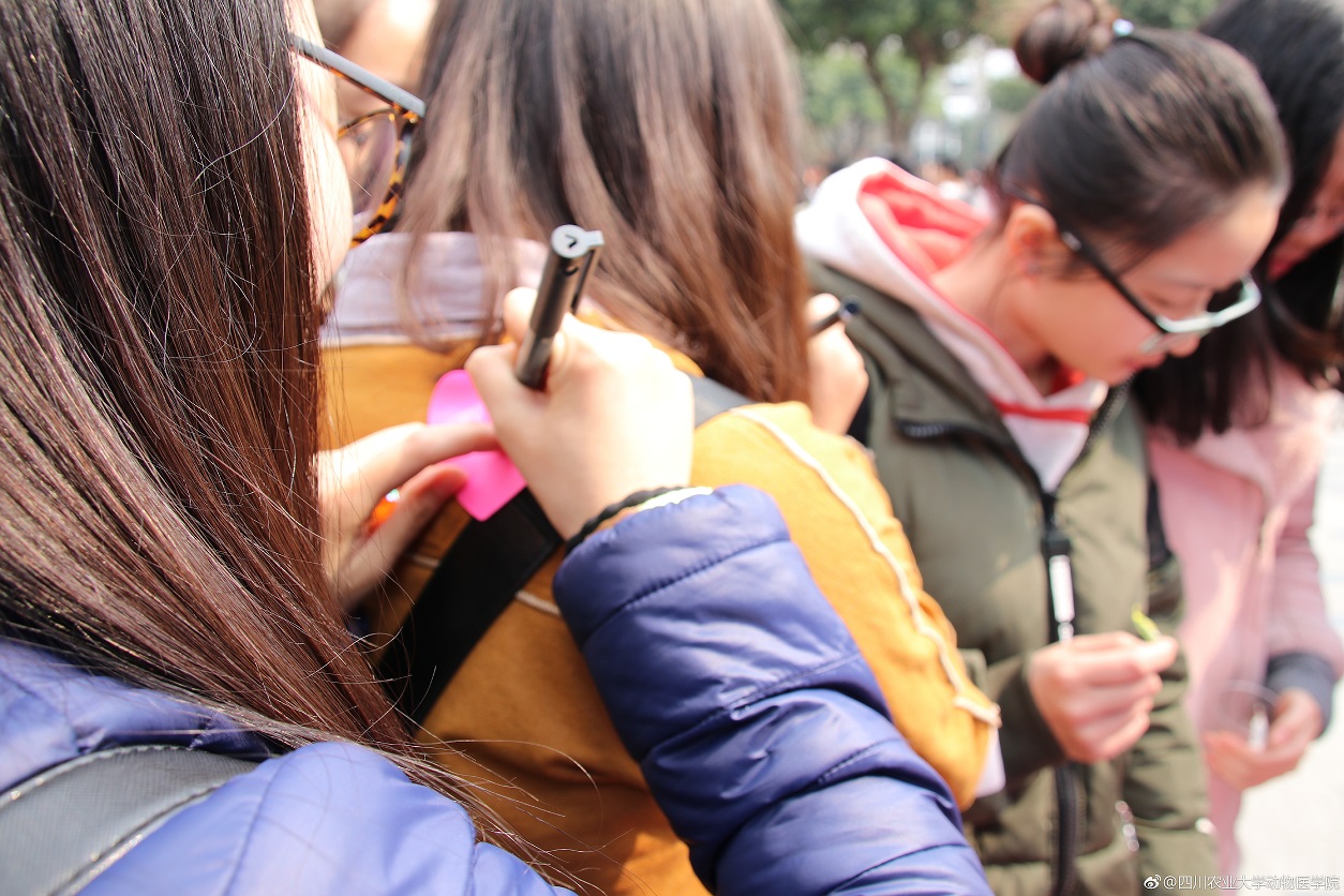 本次女生节特别活动是由动医学院学生权益部、实践部、青年志愿者协会等学生组织联合发起,各方志愿者协助完成,旨在构建良好学院生活环境,为“幸福、和谐、奋进”的学院文化建设助力。据悉,学院不少小班男生们也借活动助推班级建设,一系列充满爱心、友谊的活动,也得到了“四川高校资讯”博主报道并点赞!