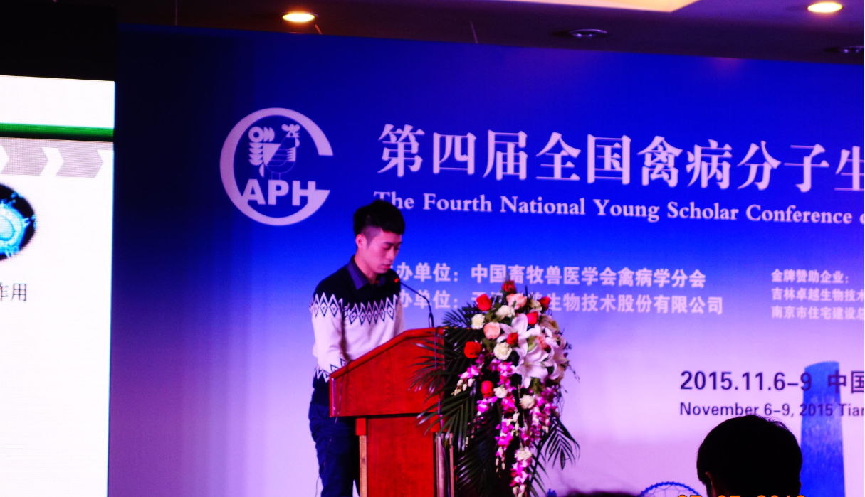bat365官网bat365官方网站预防兽医研究所陈舜副研究员带领的周浩、周琴两名硕士研究生分别作了题目为“三株禽源病毒感染下雏鹅免疫相关基因调控规律及抗原定位研究”、“鹅Ⅲ型干扰素及其受体的克隆表达及生物学特性研究”的大会报告。会议期间,与会学者就近期新发、突发、频发的禽类传染病最新研究进展进行了分享与讨论,就禽类宿主与病原互做相关领域的最新研究成果进行了充分的交流与探讨。