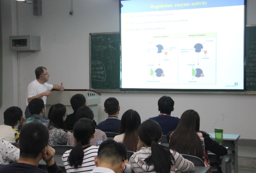 9月29日、10月13日及15日Francis研究员分别为bat365官方网站15级硕士研究生、13级本科生带去了生动形象的微生物英语教学课。课后,很多同学表示对此次外教的英语教学的专业课印象深刻。一同学说到:“Francis研究员精彩的一课拓宽了我的视野,还激发了对英语学习的兴趣,希望学校学院今后多开展这样的课程,激发大家的学习欲望。”