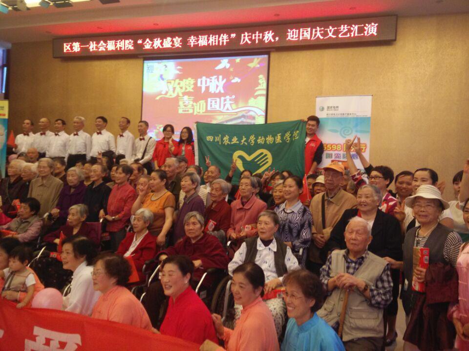 9月23日下午,由医家人举办的“金秋盛宴,幸福相伴”2015庆中秋、迎国庆活动在温江区第一社会福利院成功举办,bat365官方网站青年志愿者协会携手温江爱心拼车部落、温江东方爱婴早教中心志愿者等公益组织,为福利院的老人们带来欢笑与关爱。