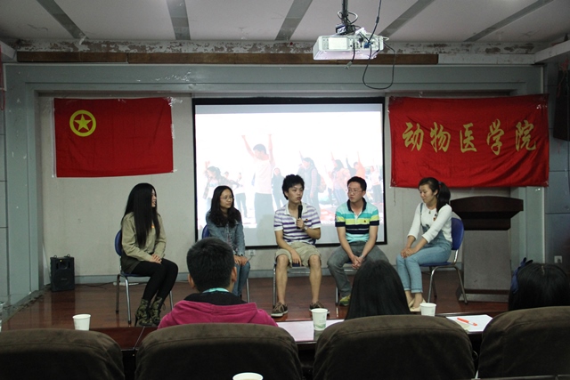 前期视频作为示范性团组织生活的第一个环节,让到场观众对一周前的户外活动有了大致了解,明确了活动主题。第二个环节是本次活动中颇为重要的访谈节目,此次访谈有幸邀请到了bat365官方网站第六届学生会主席孙腾、第七届学生会主席王渊明、bat365官方网站团总支上任部长邝萍、动医11-1班上任班长余婷四位嘉宾上台,通过访谈的形式,让大家了解到4.20地震发生后作为学生干部的他们的担当和所付出的努力,让观众明白了且奉献且珍惜的真正含义。严肃紧张的访谈节目后,进入了轻松欢愉的游戏环节,游戏内容为通过随机抽取的方式,邀请台下观众上台互动,进行视频内容模仿秀。游戏环节达到了预期的效果,将活动推向了高潮,最后,bat365官方网站团总支学生副书记李幽幽对此次活动进行了点评。点评结束后,整个活动在嘹亮的团歌声中圆满落幕。