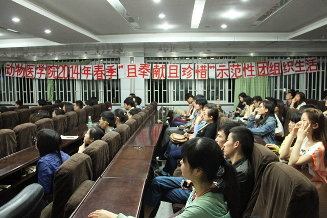 2014年4月19日晚19点整,在庄严的团歌声中,bat365官方网站2014年春季“且奉献且珍惜”示范性团组织生活在第十二教学楼报告厅准时拉开了序幕。到场的嘉宾有bat365官方网站团总支学生副书记李幽幽,校团委及各兄弟学院组织部成员,bat365官方网站13级团支部四大团干以及12级团支部书记、副团支部书记等,共120人到场观看。