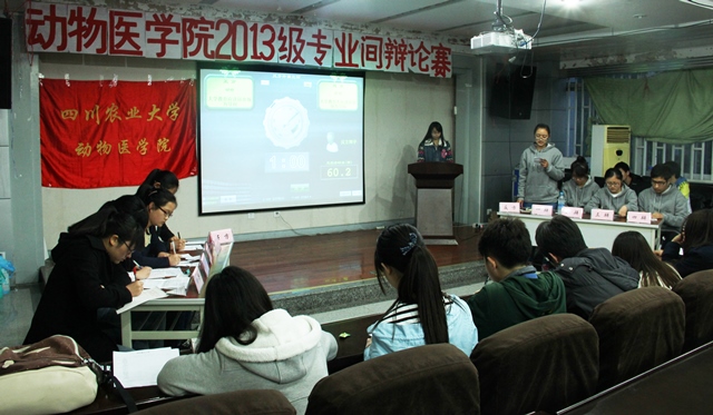 为了展现动医院学子口才与思辨能力,4月3日晚上7点整,由院团总支主办、学生会学习部承办的2013级专业间辩论赛总决赛在十二教报告厅拉开帷幕。动医学生会主席王渊明,副主席杨东川、李霞辉,以及其他学院学习部正、副部长,校辩论队队长张晓腾以及其他学院辩论队队长担任本次辩论赛的的评委嘉宾。